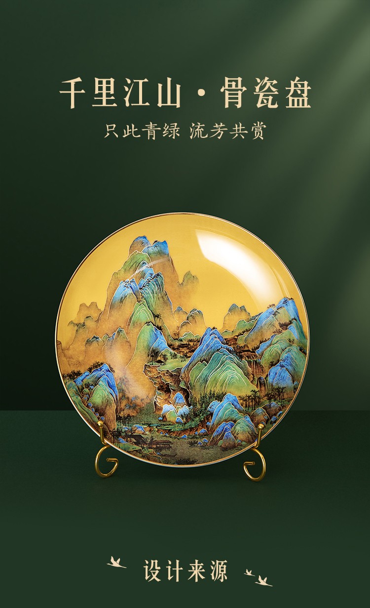 千里江山骨瓷盘...